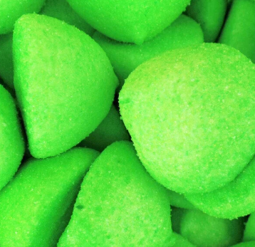 Guimauves vertes à la pomme, en forme de balles de Golf.