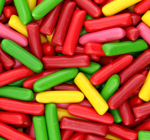 INGREDIENTS : Sucre, sirop de glucose, graisse de palme, 5% jus de fruits a base de concentré (pomme, pêche, citron, fraise, framboise), gélatine (gélatine bovine), stabilisant : gomme arabique, amidon modifié, acidifiants : acide lactique, acide citrique, arômes, émulsifiant : lécithines, colorants : carmins, curcumine, bleu brillant FCF, charbon végétal médicinal, agents d'enrobage : cire de carnauba, shellac, cire d 'abeille blanche et jaune.