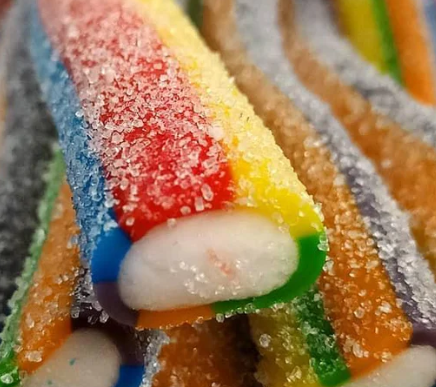 Bonbon en forme de bâton couleur multicolore acide et intérieur blanc .